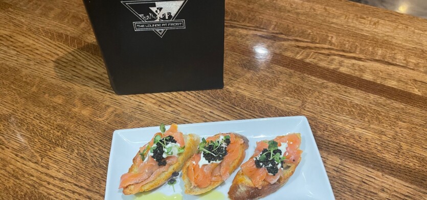 At Frost we proudly offer "Eclectic Modern Fusion" dishes with international influences. All dishes are homemade from fresh local ingredients and crafted by our Executive Chef and his team. In addition to our tapas and small plates geared towards sharing, we offer many features that are full fare as well. Given the highly customized and specialized nature of our dishes, we are unable to offer any substitutions or changes. Many Gluten-Free and Vegetarian options are available.